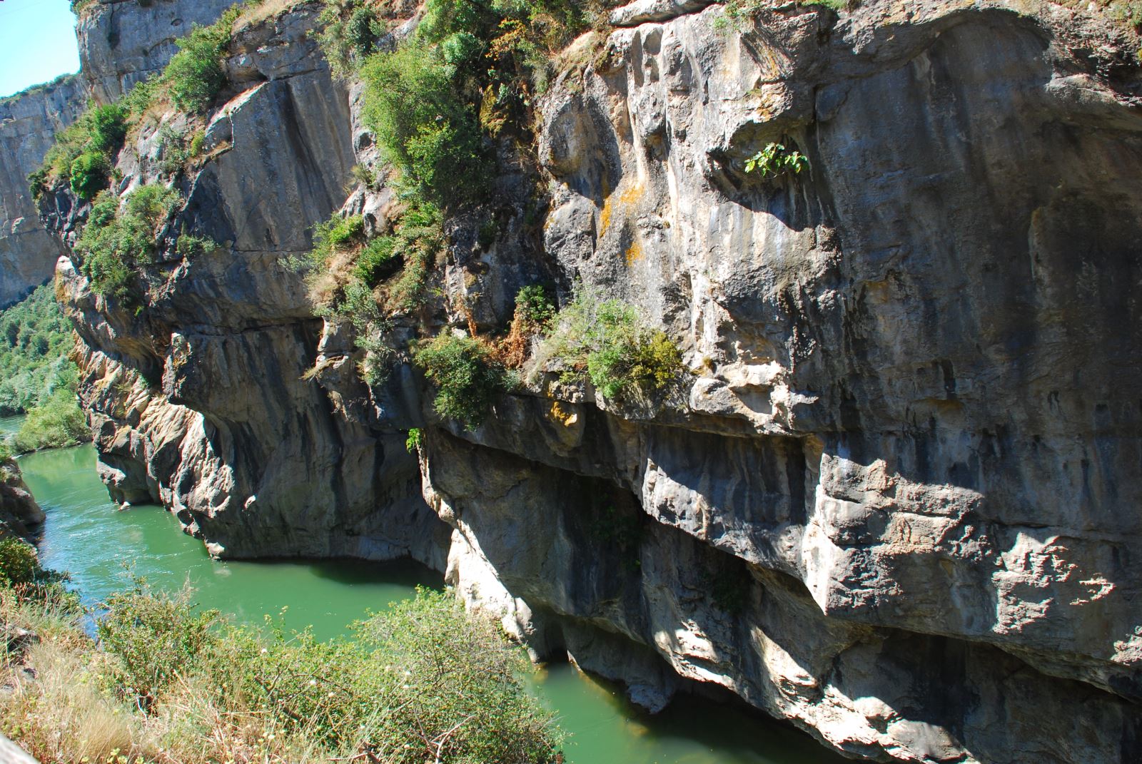 However, before coming to the carpark and recreational area, and shortly after leaving Lumbier, we cross the itinerary’s first bridge over the Salazar River –it is worth mentioning that we will come across a reminder of the old bridge of Los Hierros that used to exist here, along with an information panel. From here, we can take the liberty to contemplate this tranquil river course. Its considerable volume of water, which is crossed downriver by the medieval bridge of Las Cabras, was responsible for carving the morphology of Foz de Arbayún, the most impressive of the Navarre canyons in the Pyrenees.